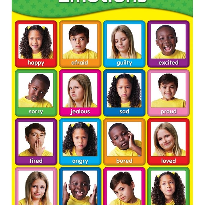 The Emotions chart for students helps learners recognize and understand nonverbal communication and feelings. This classroom chart measures 17" x 22" and features 16 emotions—each includes a picture of a child expressing that emotion.