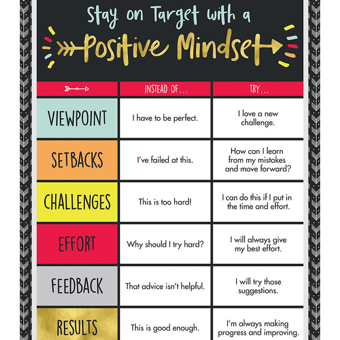 When students believe in their abilities, the sky is the limit. The 17" x 22" Aim High Positive Mindset chart boosts student’s morale by offering words of encouragement to keep focused on achieving their goals.