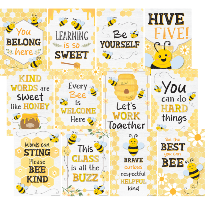 Inspire and motivate with cheerful, brightly-colored posters featuring buzzing bees and positive sayings! These delightful designs in white, yellow, and black, capture attention and promote a growth mindset, creating a warm and encouraging classroom hive.