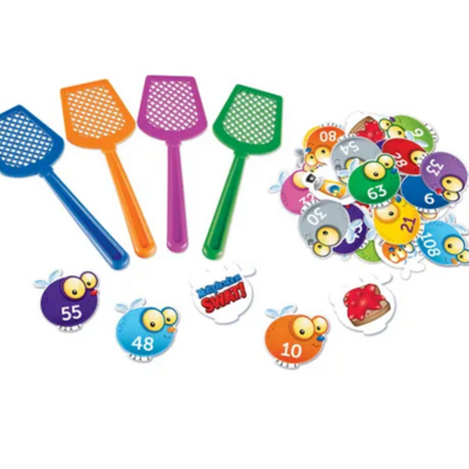 A fun hands-on way to learn multiplication skills! Layout your flies, pick an equation, then trace to swat the correct answers first! Obstacles including fly spray and sticky toast add an extra challenge!