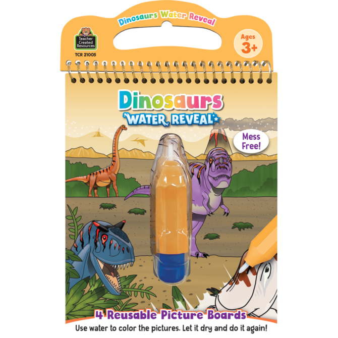 Take your children on a prehistoric adventure! With this water reveal book, students will travel into the mesozoic era to discover a variety of dinosaurs. Use water to color the pictures. Let it dry and do it again!